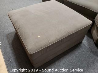 Item Description: In excellent condition, still has original tags. Comes with 6 matching throw pillows. Ottoman is lift top storage. 32" H x 116" long, 47" D, ottoman is 18" H x 39" x 39".