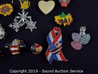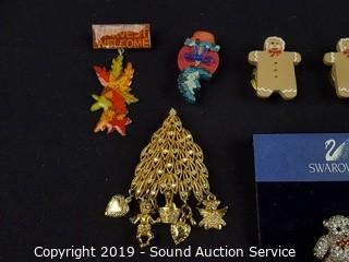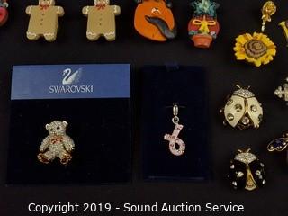 Item Description: Swarovski bear pin, Swarovski breast cancer charm, Joan Rivers, and more. ATTN: We are not jewelry experts or appraisers, please use your own judgement when bidding.
