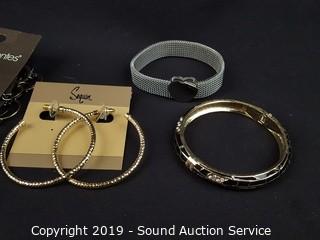 Item Description: Sequin bracelets and earrings, Daisy Fuentes, Nordstrom, Kathy Van Zealand watch charm bracelet, and more. ATTN: We are not jewelry experts or appraisers, please use your own