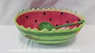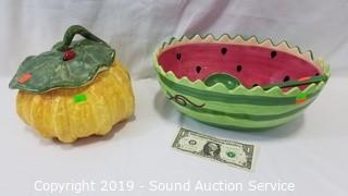 Lot #0168: Hand Painted Watermelon Bowl & Squash Covered Dish