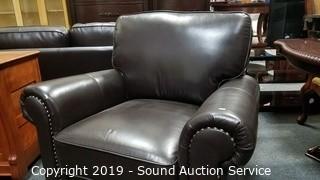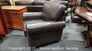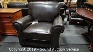 Lot #0002: Like New Abbyson Living Brown Leather Easy Chair