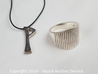 Lot #0075: Mexico 925 Ring & Caribou Sterling Pendant Necklace