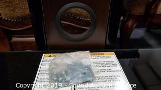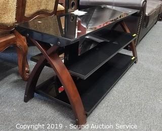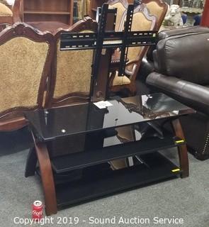 Item Description: Believe it holds up to a 60" flat screen TV, 3 glass shelves. In excellent like new condition, seems fairly new. 22" H x 50" W x 17" D, mount is 50" tall.