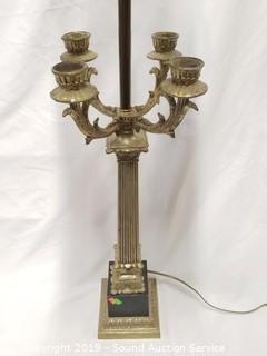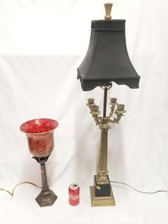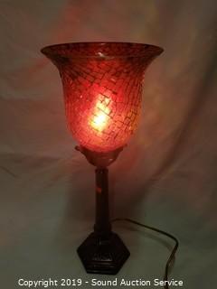 Item Description: Includes a tall candelabra table lamp with gold finish, 42" tall, and a party light mosaic table lamps 20" T x 8" dia.