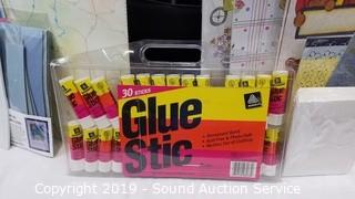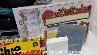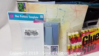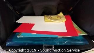 Item Description: Includes glue sticks, various paper, stencils and more. Bag is 16" x 18" x 10".