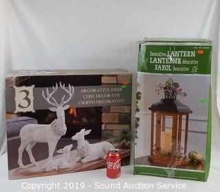Lot #0180: 3pc. Decorative Deer's & Lantern