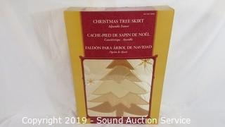 Item Description: All new. Embroidered tree and present tree skirt is 66" diameter. 1.3 gallon capacity stand. Bag holds up to 8ft tree.