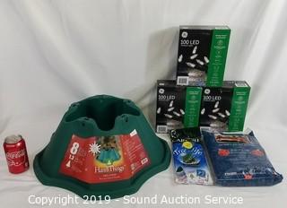 Lot #0098: 8ft Tree Stand, 3 100 LED String Lights & Tree Kit