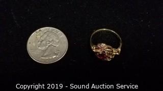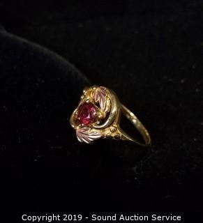 Lot #0219: 10K Black Hills Gold Red Gemstone Ring S:6.5 TW:3g