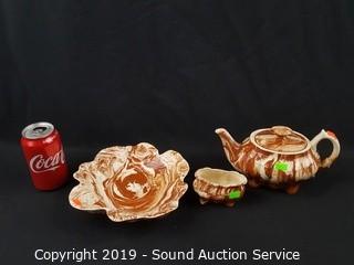 Lot #0250: 3pc. A/S "Rose" Alaska Clay Pottery