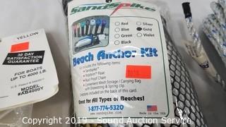 Item Description: Beach anchor kit, Pocket Puller (makes it easy to pull up crab & shrimp pots), 5/16" x 100'ft nylon rope, Anchor Buddy stretchable rope, from 14'ft to 50'ft.
