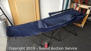 Lot #0380: Packable Blue Folding Outdoor Lounge Chair/Cot
