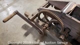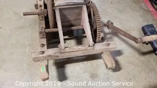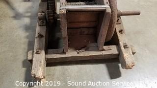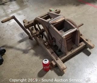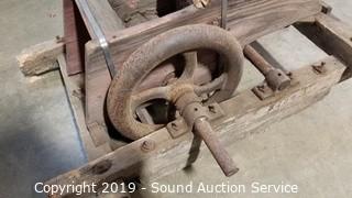 Lot #0220: Antique Wood Hand Crank Milling Farm Tool