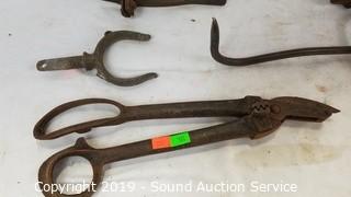 Lot #0175: Antique Wrought Iron Tools & Hardware