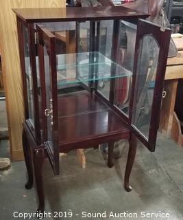 Lot #0024: Mahogany Finish Mirrored Curio Cabinet