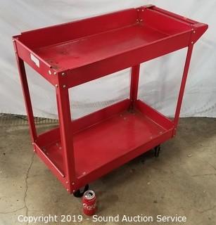 Lot #0376: Red Utility 2-Tier Shop Cart