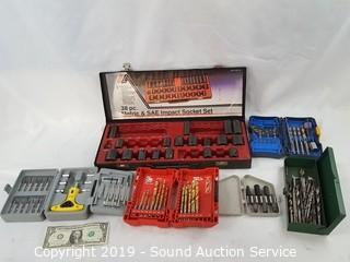 Item Description: Screw bits, drill bits, grinding bits, & partial socket set.