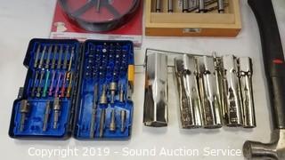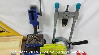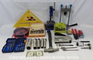 Lot #0309: Various Tools - Bits, Drill Press, Square