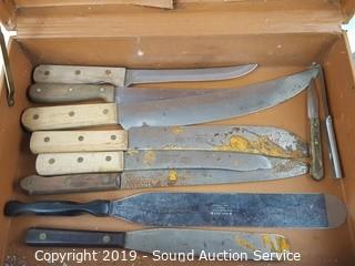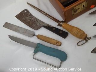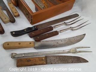 Lot #0289: Various Vtg. Carving knives, Forks, & Cleaver