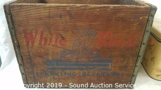 Item Description: Crate has a "White Rock" advertising logo, 13" x 16" x 11.5".