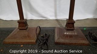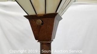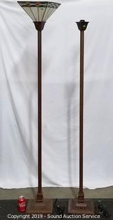 Lot #0026:     2 Bronze Finish Stained Glass Shade Floor Lamp