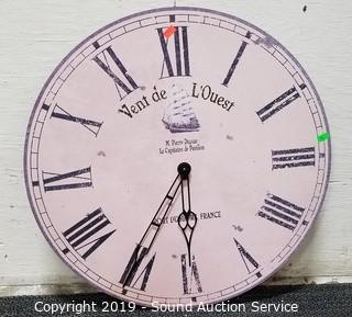 Item Description: Sterling and Noble, 2 Edinburgh Clockworks Co. England and French (hand stopper has broken off, still functions). 15" to 22" dia.