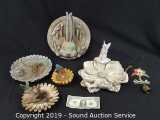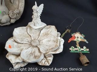 Lot #0334: 4 Small Bird Baths & Outdoor Wall Decor