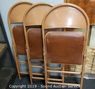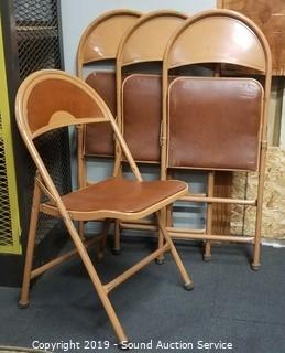 Lot #0221: 4 Vtg. Metal Vinyl Seat Folding Chairs