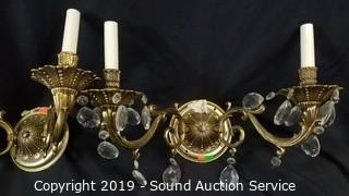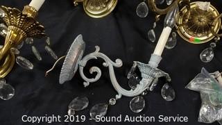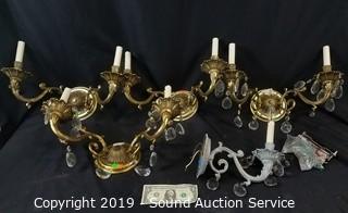 Lot #0114: 5 Brass Crystal Prism Wall Sconces