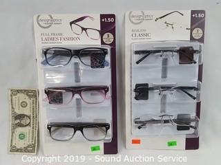 Lot #0268: 6 Pairs Design Optics +1.5 Reading Glasses