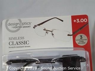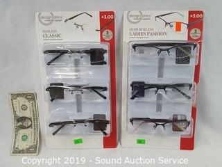 Lot #0270: 6 Pairs Design Optics +3.0 Reading Glasses
