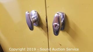 Item Description: Locking no key. Has 4 shelves. Approx. 7ft H, 3ft W, 19.5" D.