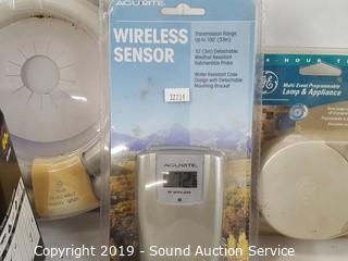 Item Description: Standard and florescent light bulbs, 14pk of Duracell C batteries, 3 Lamp & Appliance timers, wireless sensor.