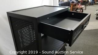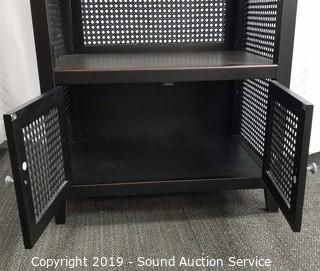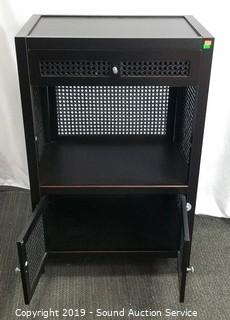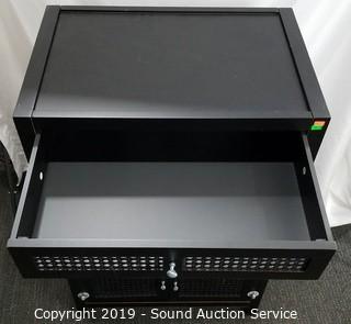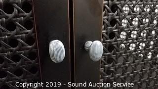 Lot #0023: Black Modern Cane Accent Single Drawer Cabinet