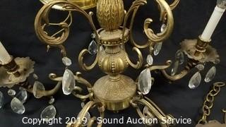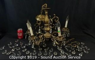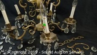 Lot #0113: Brass & Crystal Prism Chandelier
