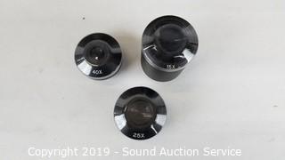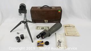 Item Description: Comes with tripod, interchangeable lenses (15X, 25X, 40X), all purpose Tiffen Argus C4 adapter ring (believe it can be attached to a camera), original case and manual.