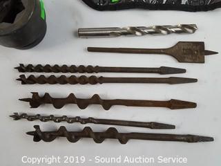 Item Description: Comes with 11pc set of hole saw bits, Craftsman all purpose reciprocating saw blades 6" and 8", augur bits, 7-1/4" circular saw blade and snap on 1-1/2" 1" drive