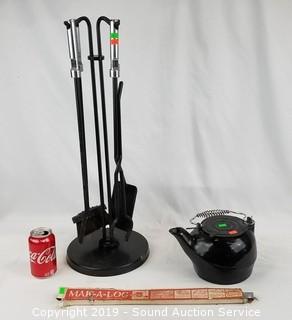 Lot #0197: Fire Poker Set, Cast Iron Teapot & Make-A-Log