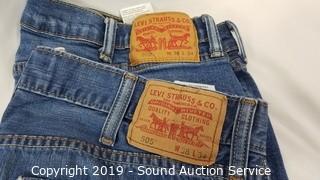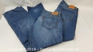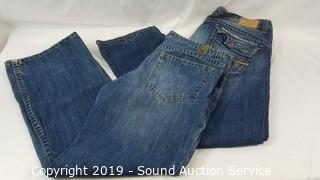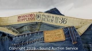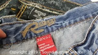 Item Description: Jeans are all 36 to 38 x 32. Includes: Buffalo, Request, Mossimo, Levi 505's 32 x 34, ski overalls XL, DKNY Guess, 7 shirts.
