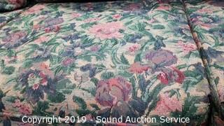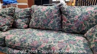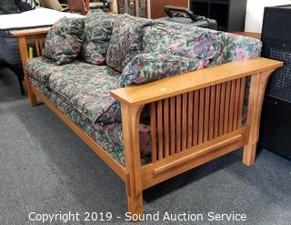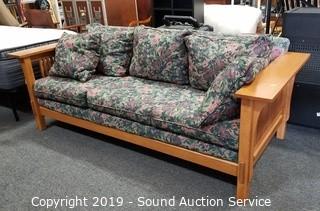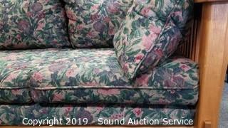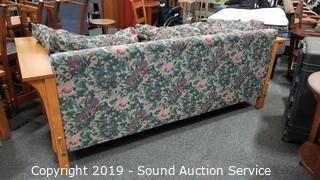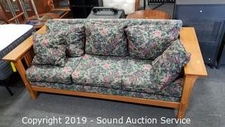 Lot #0002: Mission Style Oak & Floral Fabric Sofa