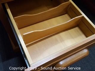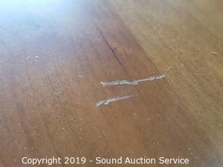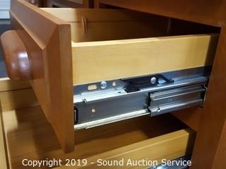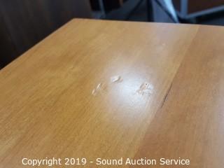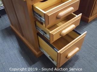 Item Description: Pull out keyboard tray, 2 pullout side trays, dovetail construction. Has a couple of scratches, overall good condition. 31" T x 59.5" W x 30" D.