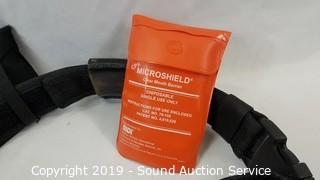 Item Description: Comes with micro shield clear mouth barrier, gloves and bio hazard infectious waste bag. Belt is adjustable. Handcuffs are made by Peerless Handcuff Co. Springfield