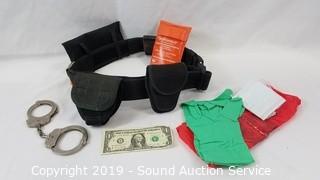 Lot #0123: Nylon Tactical Belt w/Handcuffs & More