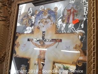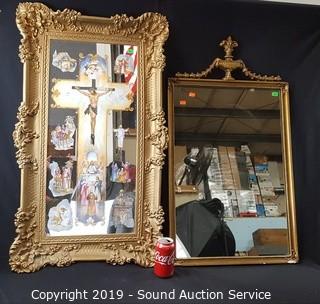 Lot #0260: Vtg. Gold Gilded Mirror & Mirrored Religious Art