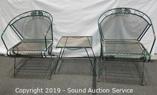 Lot #0227: Wrought Iron Patio Chairs w/Side Table