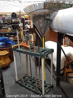 Lot #0097: Yard Tool Rack w/ Tools