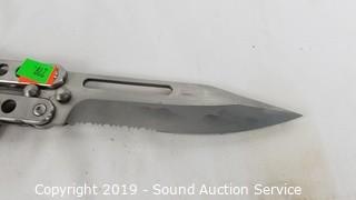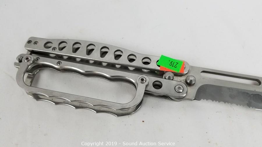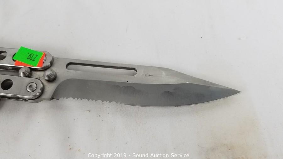 Item Description: Steel knuckle butterfly knife, I. K. Co. pocket knife, Imperial keychain knife, and other vintage keychain knife.