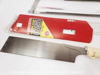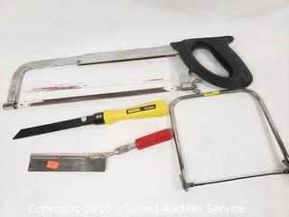 Item Description: Includes Asian cross cut hardwood saw, hobby saw, hack saws and coping saw.