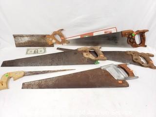 Lot #0176: 6 Vtg. Crosscut Hand Saws