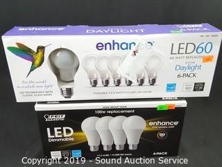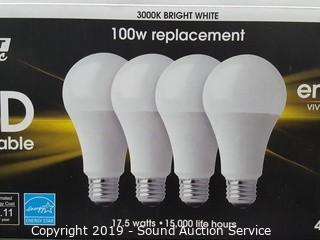 Item Description: Includes (4) 17.5W, 1600 lumens, 3000k color and (4) 8.8W, 800 lumens, 5000k color bulbs. All are dimmable.